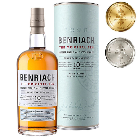 BenRiach The Original Ten 10 Year Old Three Cask Matured Speyside Single Malt Scotch Whisky ABV 43% Vol 70cl / 700ml with Gift Box