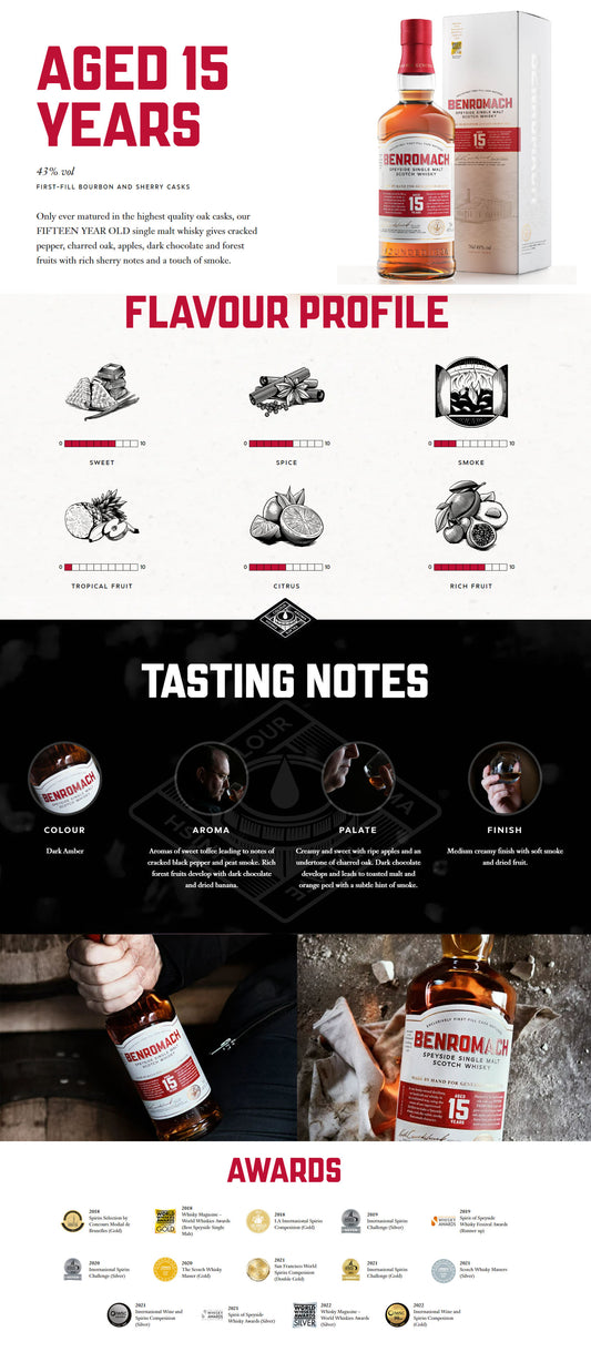Benromach 15 Year Old Exclusively First Fill Cask Matured Speyside Single Malt Scotch Whisky ABV 46% Vol 700ml / 70cl With Gift Box