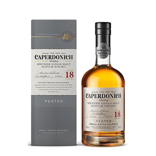 Caperdonich Distillery 18 Year Old Peated American Oak Barrels Non Chilled Filtered Small Batch Release Speyside Single Malt Scotch Whisky ABV 48% 70cl / 700ml