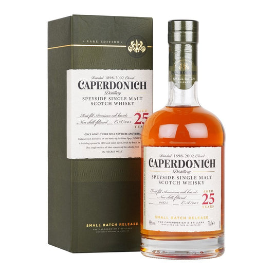 Caperdonich Distillery 25 Year Old First Fill American Oak Barrels Non Chill Filtered Small Batch Release Speyside Single Malt Scotch Whisky ABV 48% 70cl / 700ml with Gift Box