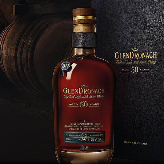 The Glendronach 50 Year Old Slowly Matured in the finest Pedro Ximenez and Oloroso Sherry Casks for at least Fifty Years Highland Single Malt Scotch Whisky ABV 43.8% Vol 70cl / 700ml