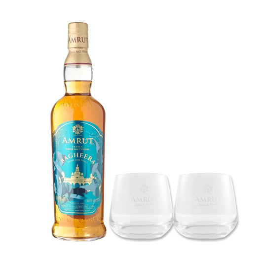 Amrut Bagheera Sherry Cask Finish Indian Single Malt Whisky ABV 46% 70cl / 700ml with 2 Glasses (No Box)