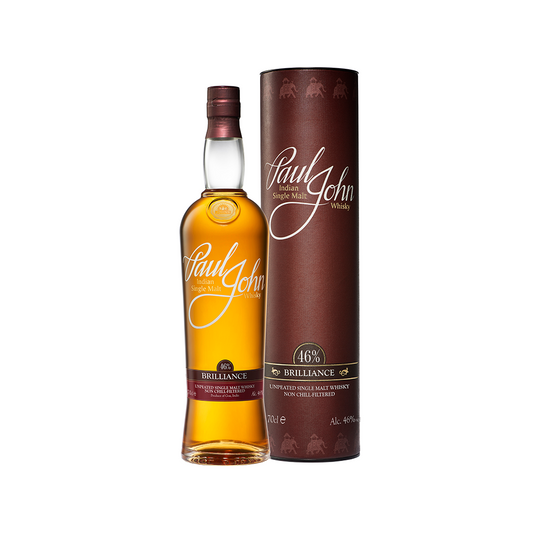 Paul John Brilliance Unpeated Non-Chilled Filtered Indian Single Malt Whisky ABV 46% Vol 70cl / 700ml (With Gift Box)