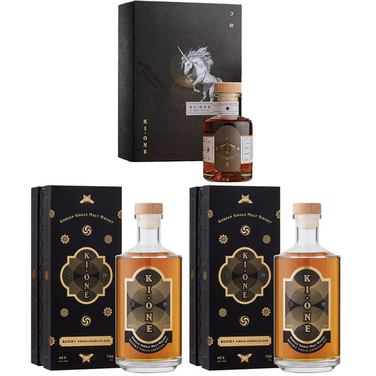 Ki One Unicorn Korean Single Malt Whisky ABV 56.6% 200ml x 1 bottle + Ki One Batch 1 Virgin American Oak Single Malt Korean Whisky ABV 40% 700ml x 2 bottles (Bundle Deal)