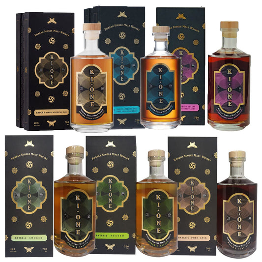 Ki One Batch 1 + Batch 2 + Batch 3 + Batch 4 Smoked + Batch 4 Peated + Batch 5 Port Cask + Batch 6 PX Sherry Korean Single Malt Whisky (700ml x 7 Bottles Bundle)