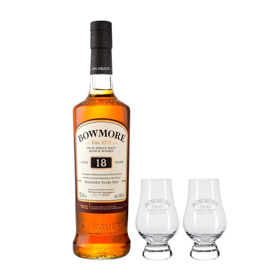 Bowmore 18 Years Old Islay Single Malt Whisky FREE 2 Whisky Nosing Glass (No Box)