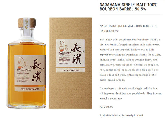 Nagahama Distillery 長濱 100% Bourbon Barrel Single Malt Japanese Whisky ABV 50.5% Vol 500ml / 50cl