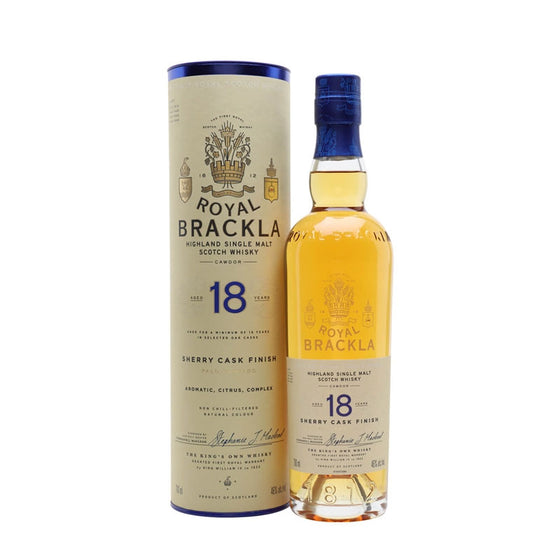 Royal Brackla 18 Year Palo Cortado Oloroso Sherry Cask Finish The King's Own Whisky Highland Single Malt Scotch Whisky ABV 46% Vol 70cl / 700ml