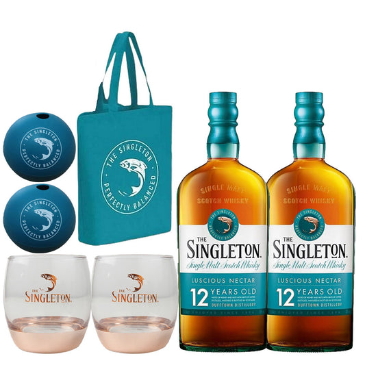 The Singleton Dufftown Distillery 12 Years Old 700ml x 2 + Free Whisky Glass x 2 + Ice Ball Mould x 2 & Tote Bag x 1 (Bundle Set)