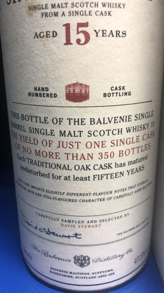 The Balvenie Aged 15 Years Single Barrel Single Cask Single Malt Scotch Whisky ABV 47.8% Vol 70cl / 700ml (Discontinued Vintage Bottle, Label and Box are not in perfect condition)