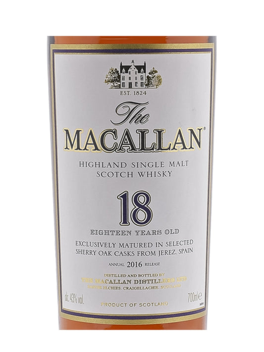 The Macallan 1987 18 Year Old Sherry Oak (Bottled 1995) Single Highland Scotch Whisky ABV 43% 750ml
