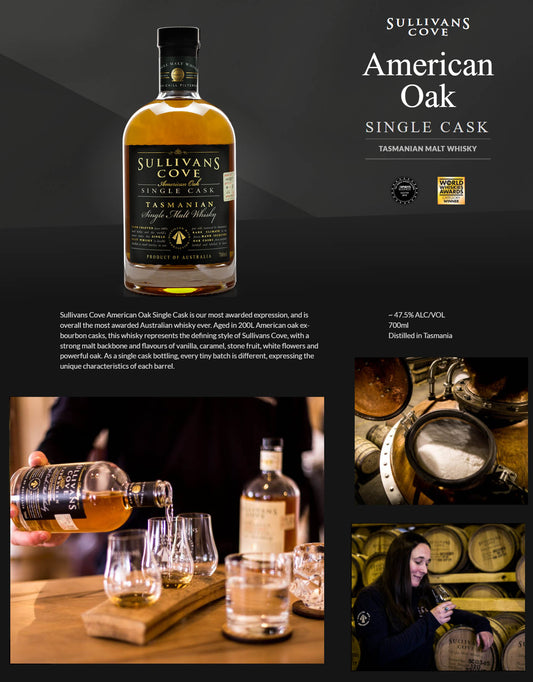 Sullivans Cove American Oak Ex Bourbon Single Cask Tasmanian Single Malt Australian Whisky ABV 49% Vol 70cl / 700ml