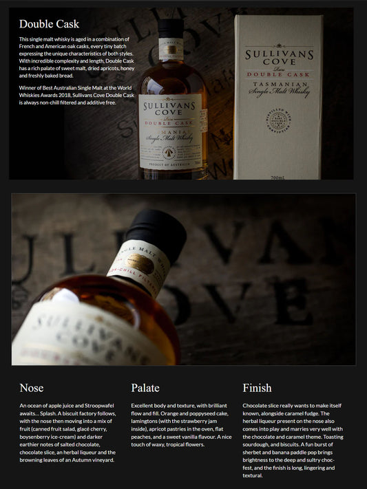 Sullivans Cove Rare Double Cask Tasmanian Single Malt Australian Whisky ABV 45% Vol 70cl / 700ml