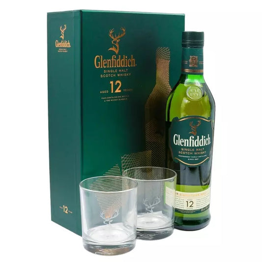 Glenfiddich 12 Years Old Single Malt Scotch Whisky ABV 40% Vol 75cl / 750ml (Gift Set 750ml FREE 2 Glasses)