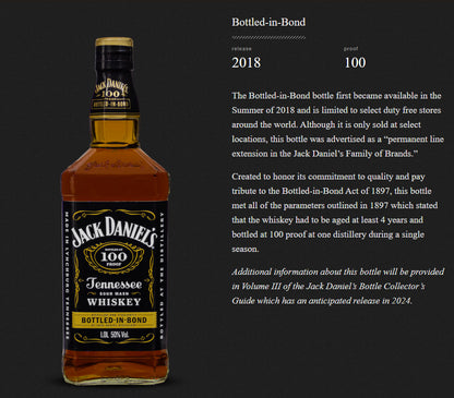 Jack Daniels Bottled in Bond Tennessee Whiskey ABV 50% Vol 100cl / 1000ml / 1L (With Gift Box)