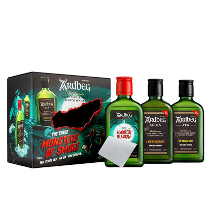 Ardbeg Monster Of Smoke 3x 200ml (Gift Pack) Islay Single Malt Scotch Whisky (Ardbeg 5 ABV 47.4% & Ardbeg 10 ABV 46% & Ardbeg Ao ABV 46.6%)