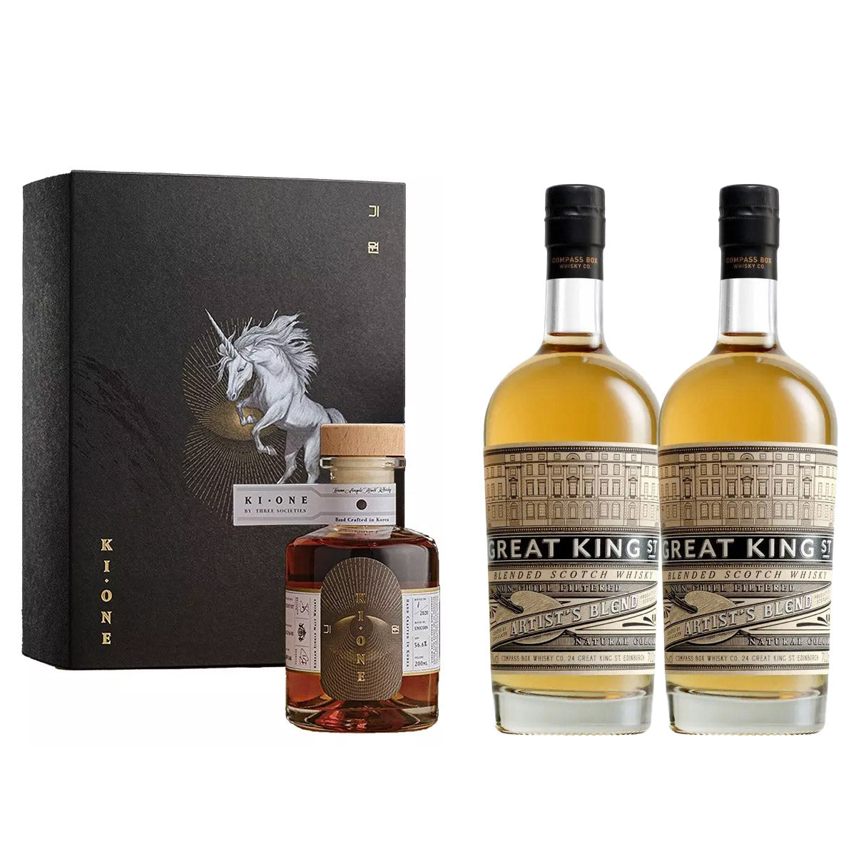 Ki One Unicorn Korean Single Malt Whisky ABV 56.6% 200ml x 1 Bottle + Great King Street Artist's Blended Compass Box Scotch Whisky ABV 43% 700ml x 2 Bottles (Bundle Deal)