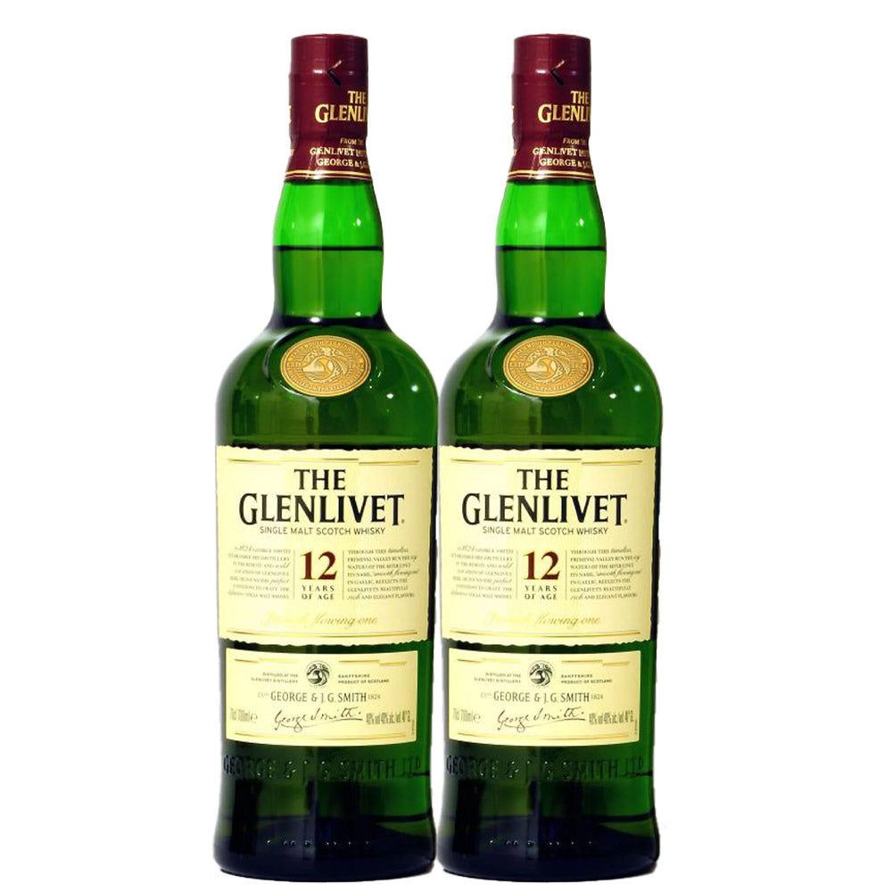 The Glenlivet 12 Years of Age Single Malt Scotch Whisky ABV 43% Vol 75cl / 750ml (Bundle of 2 Bottles Agent Stock, Old Design - No Box)