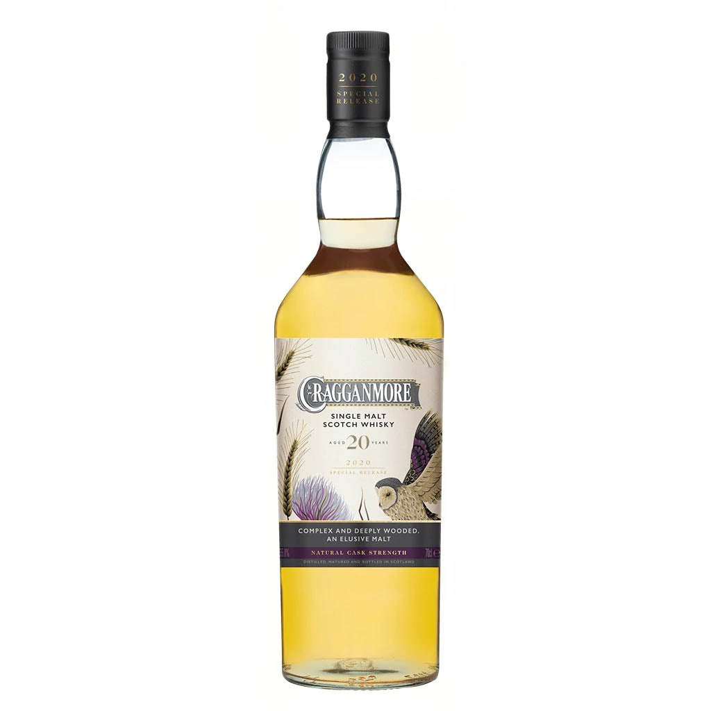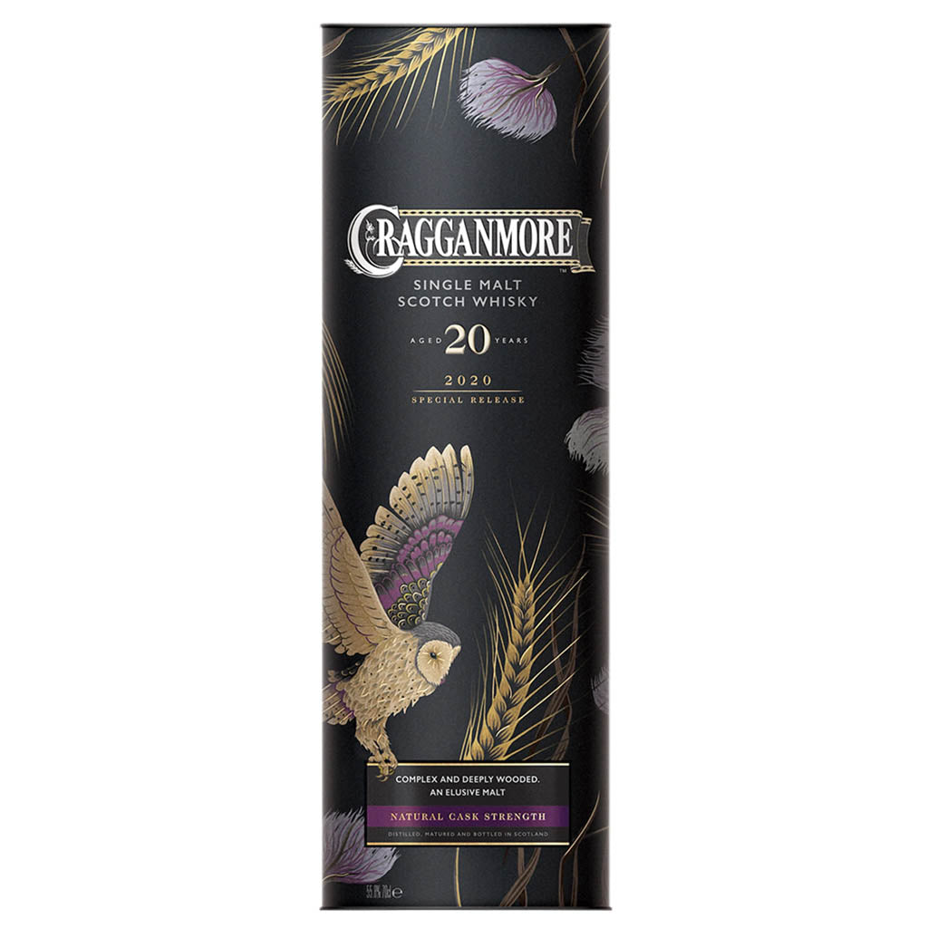 A Cragganmore of this age has never been released from the distillery, making this elusive malt a much-anticipated expression. In addition, sweet and mellow woody notes emerge from this small-batch, patiently matured over 20 years in a mix that included new fresh-charred American oak casks. Cragganmore is a highly respected Speyside malt founded by a giant among distillers, John Smith. The ethereal aromas are among the most complex to be found in any malt, appearing and disappearing mysteriously like the ghostly flight of the Barn Owl as it quarters the wooded Speyside glens at twilight in search of its prey. Showing the sweet and spicy effects of part maturation in new oak, this expression explores the woods just as deeply. The mellow nose is sweet overall, revealing fruity top notes of ripe pear, soft melon and green banana, then more savoury hints of soft glove leather and sanded hardwood. The texture is creamy-smooth while the taste is rich and not quite as sweet, delightfully balanced by a savoury mid-palate. The finish is long, velvety and spicy-dry.