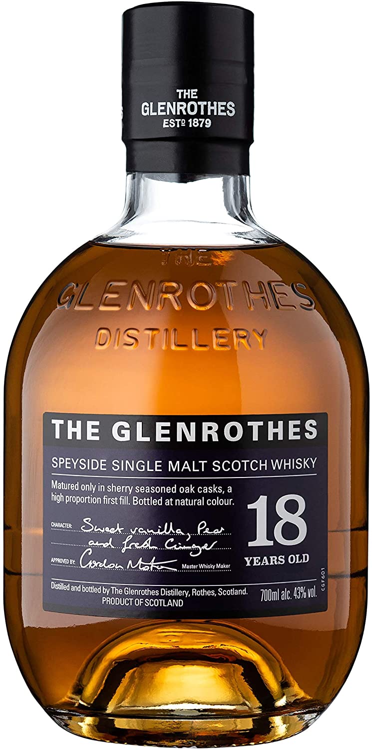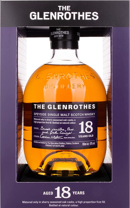 The Glenrothes 18 Years Old Matured only in Sherry Seasoned Oak Casks Speyside Single Malt Scotch Whisky ABV 43% Vol 70cl / 700ml