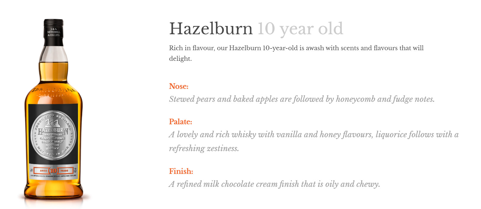 Hazelburn 10 Year Old by Springbank Distillery Triple Distilled Matured in Oak Campbeltown Single Malt Scotch Whisky ABV 46% Vol 70cl / 700ml