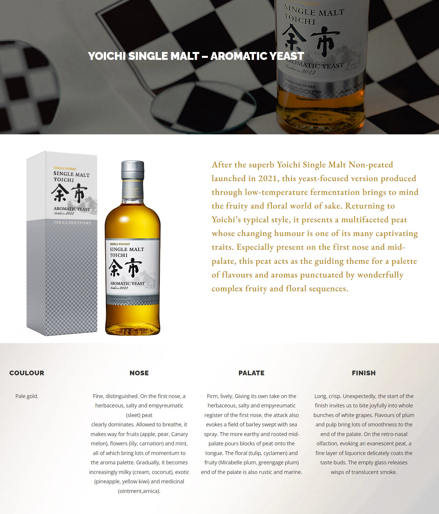 Nikka Discovery Yoichi 余市 Aromatic Yeast Single Malt Bottled 2022 ABV 47% Vol 70cl / 700ml