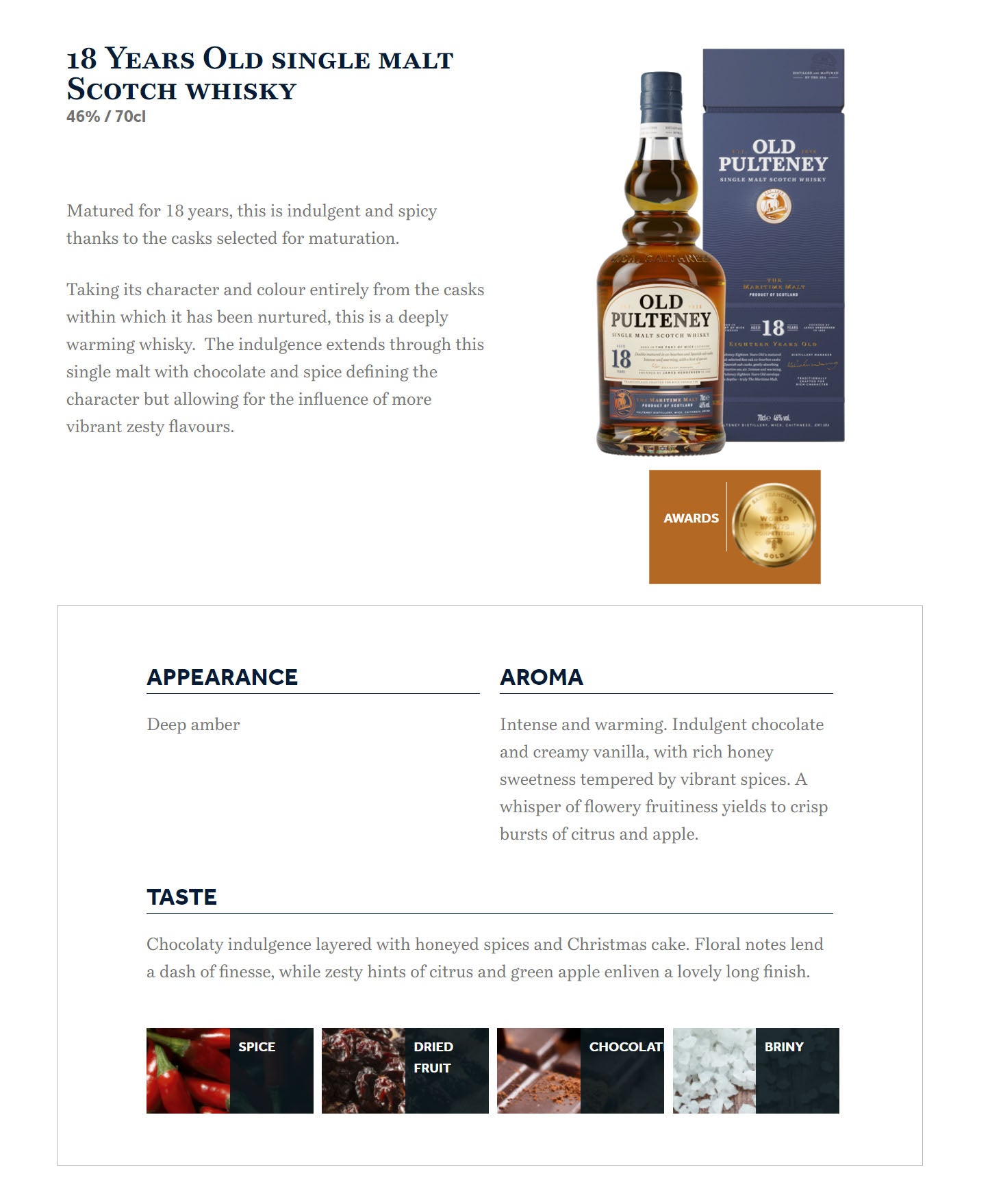 Old Pulteney 18 Year Old Double Matured in Ex-Bourbon and Spanish Oak Cask Highland Single Malt Scotch Whisky ABV 46% Vol 70cl / 700ml (With Gift Box)