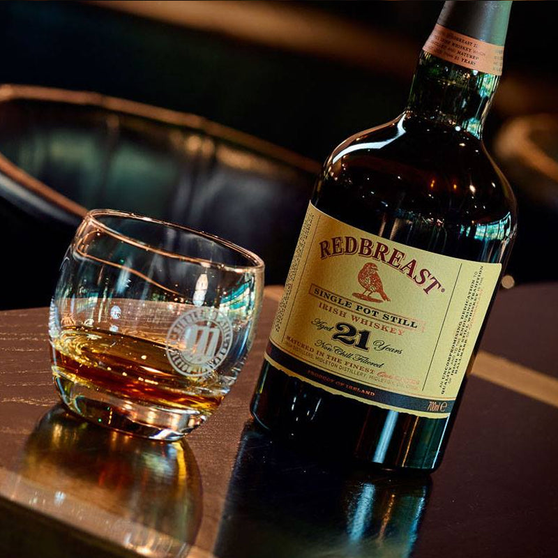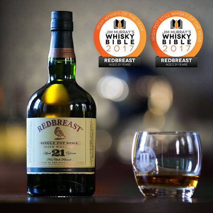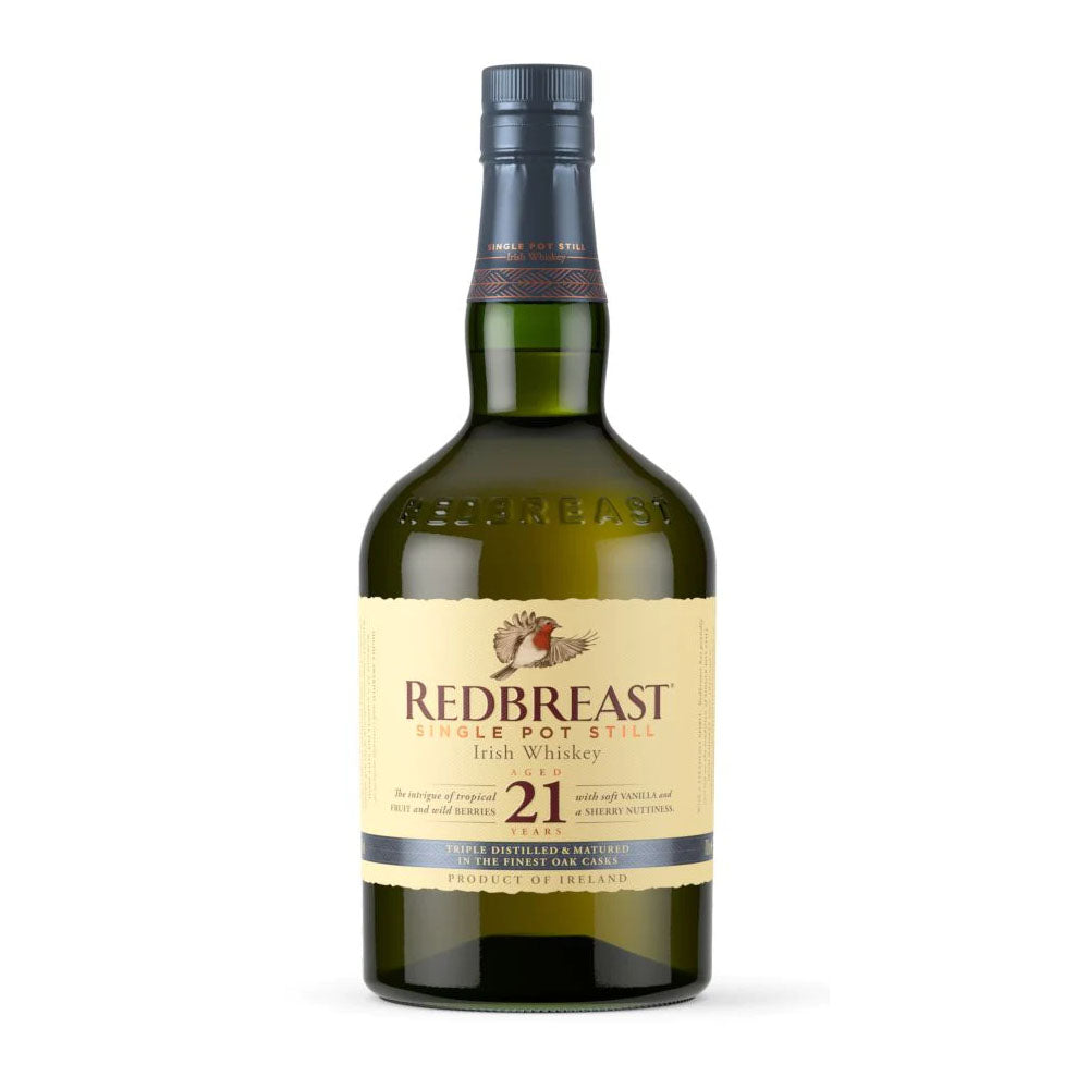 Redbreast 21 Years Old. Matured for a minimum of 21 years in a combination of first-fill ex-sherry casks and ex-bourbon barrels. This venerable limited edition’s sherry cask influence is a little more pronounced than other Red Breast expressions, contributing richness and depth in the form of exotic fruits and spices.