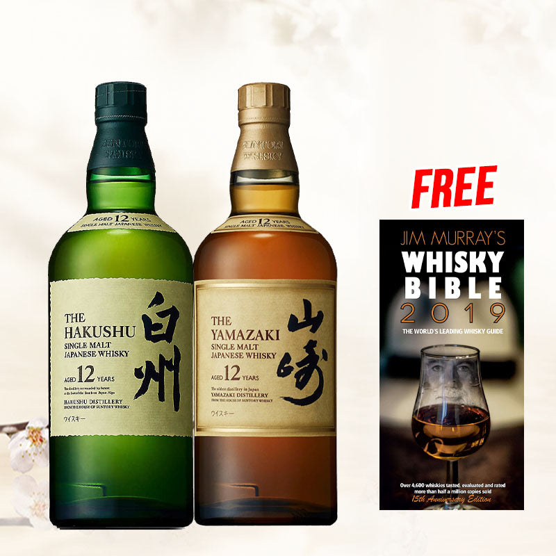 Yamazaki Distillery 山崎 12 Years Old 700ml + Hakushu 12 Years Old 700ml Free Whisky Bible (Bundle)
